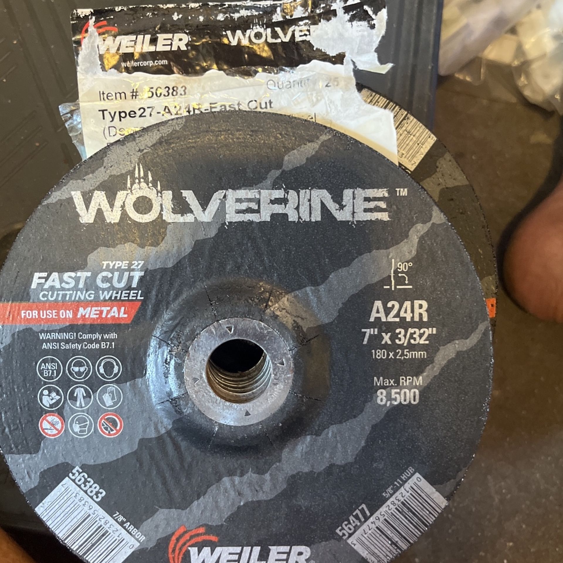 Wolverine Type 27 Fast Cut Cutting Wheel.A24R 7”x3/32