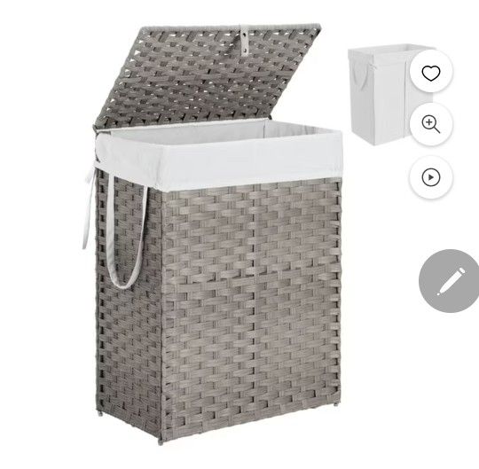 Spacious grey rattan-style laundry hamper. Has a removable white liner and a lid. Super convenient, it's foldable for easy storage when not in use. Holds up to 90L, max load 55lb. Great for keeping your space tidy! Pick up shaw and sunnyside. Cash is preferred but chime and venmo are accepted as well. All items are sold as is with no warranty or guarantee of any kind. All sales are final. Delivery is available for $10