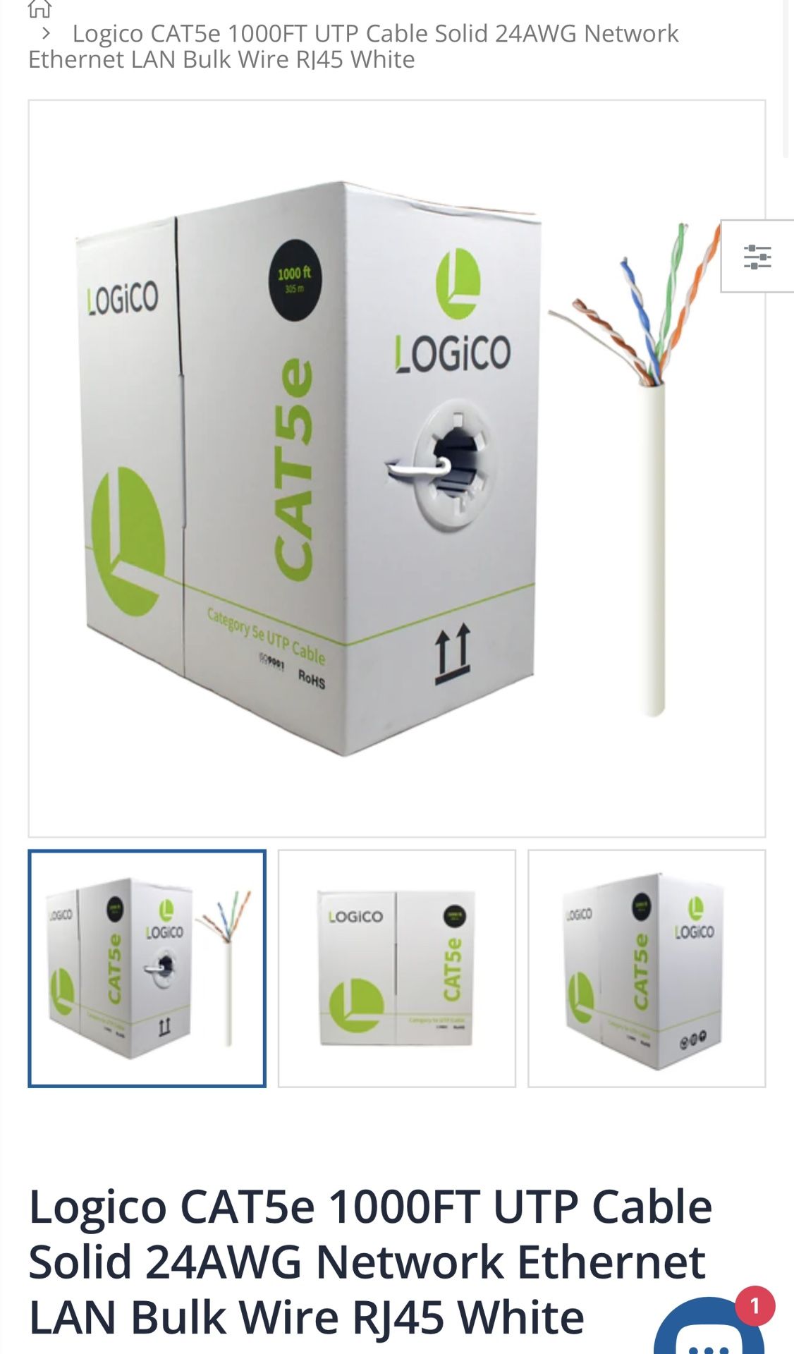 Logico CAT5e 1000FT UTP Cable Solid 24AWG Network Ethernet