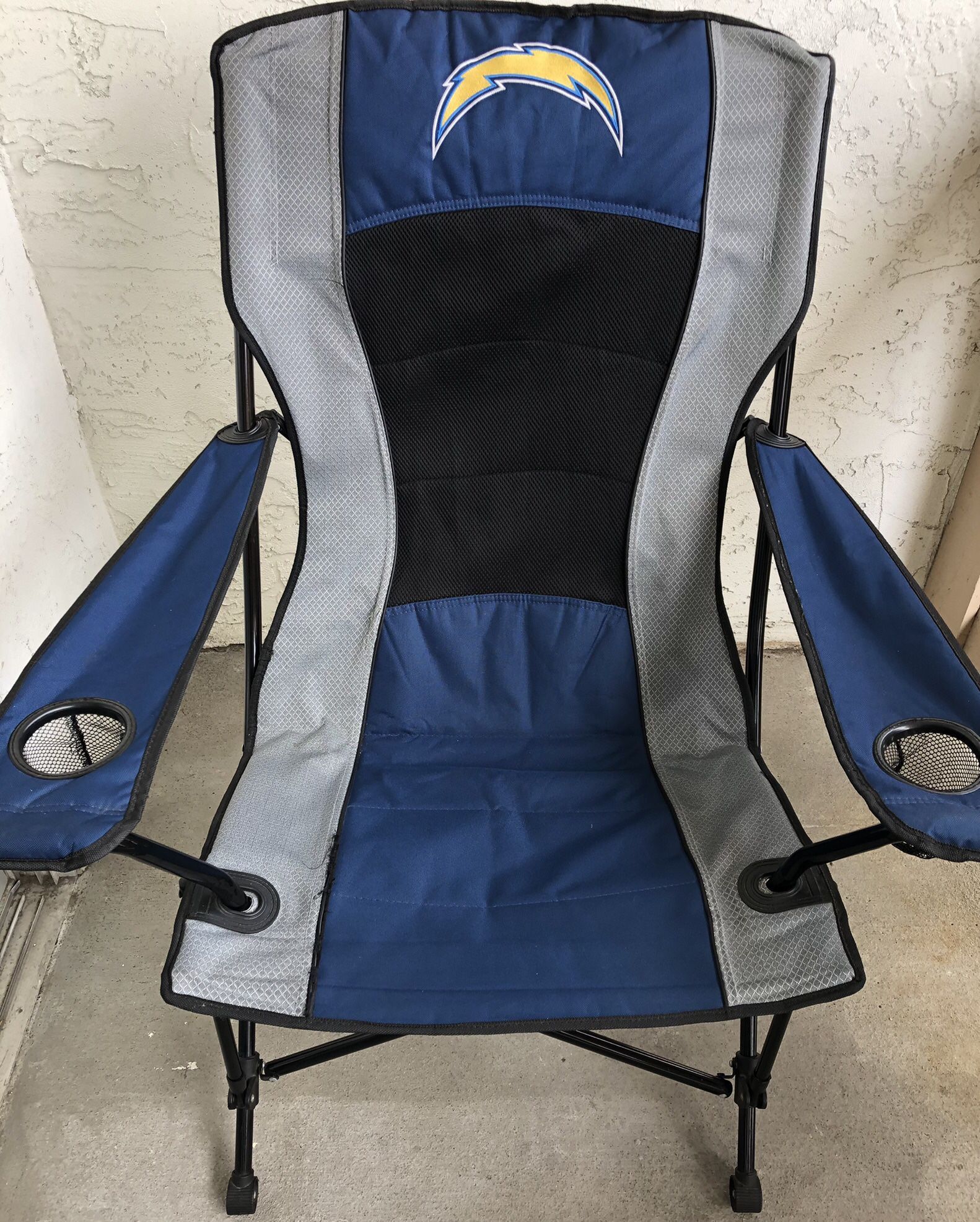 For those true Chargers fans, here’s a Chargers High Back Chair lightly used indoors only. Used as a desk chair, but it’s time to upgrade. Get this for your summer events; park, beach, bonfires, sport games.