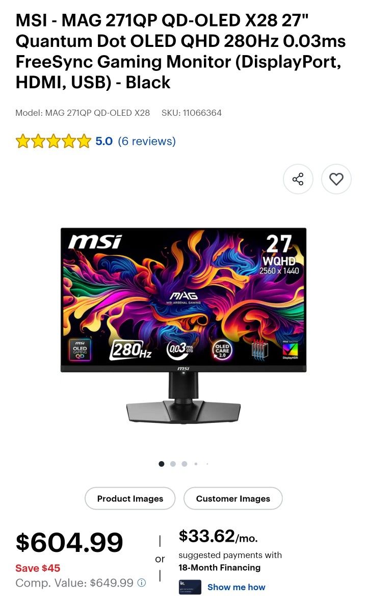 27 INCH OLED 280HZ MONITOR WITH MOUNT