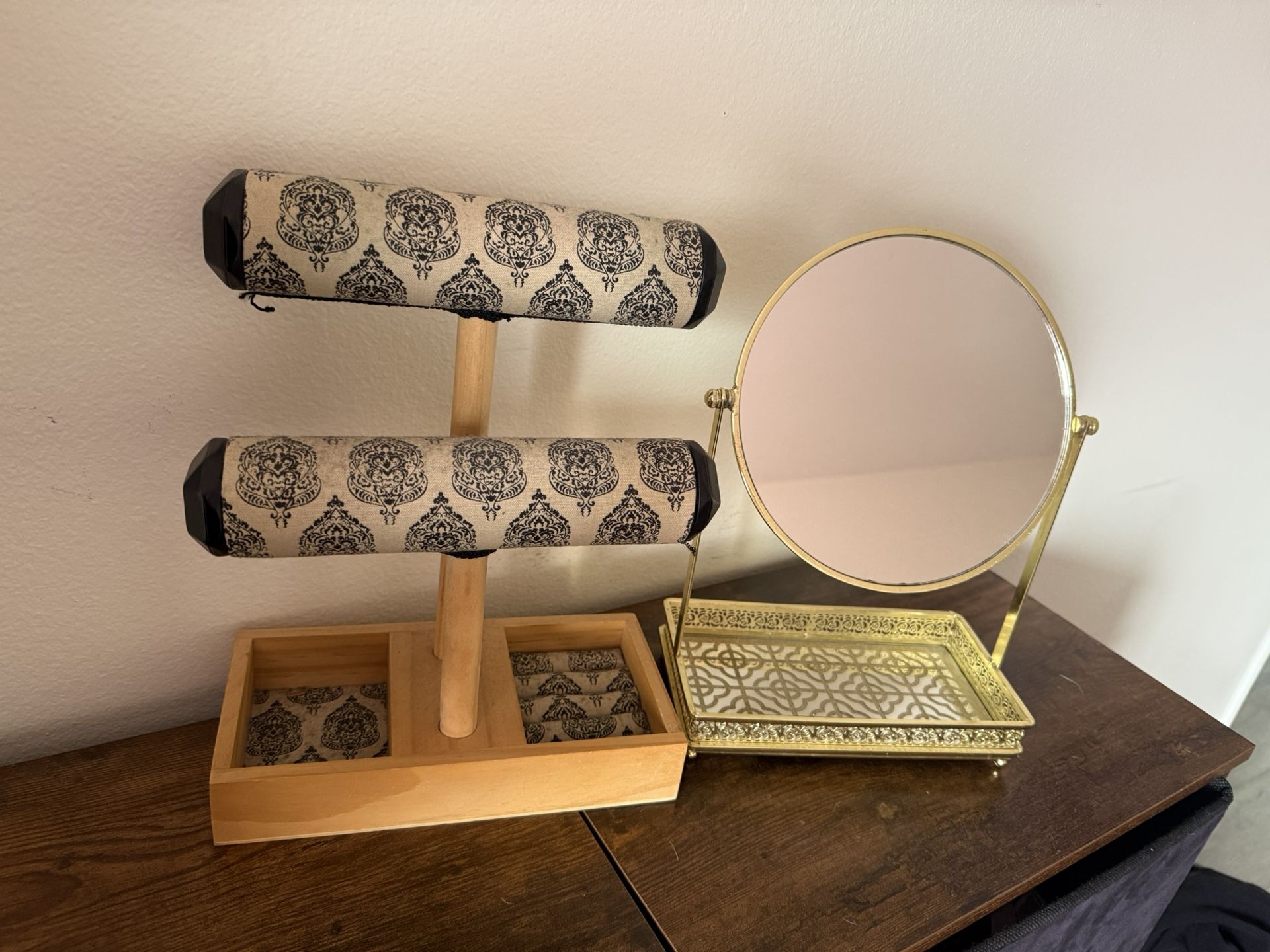 Women’s Jewelry Mirror Case Display Gold Rings Necklace Holder