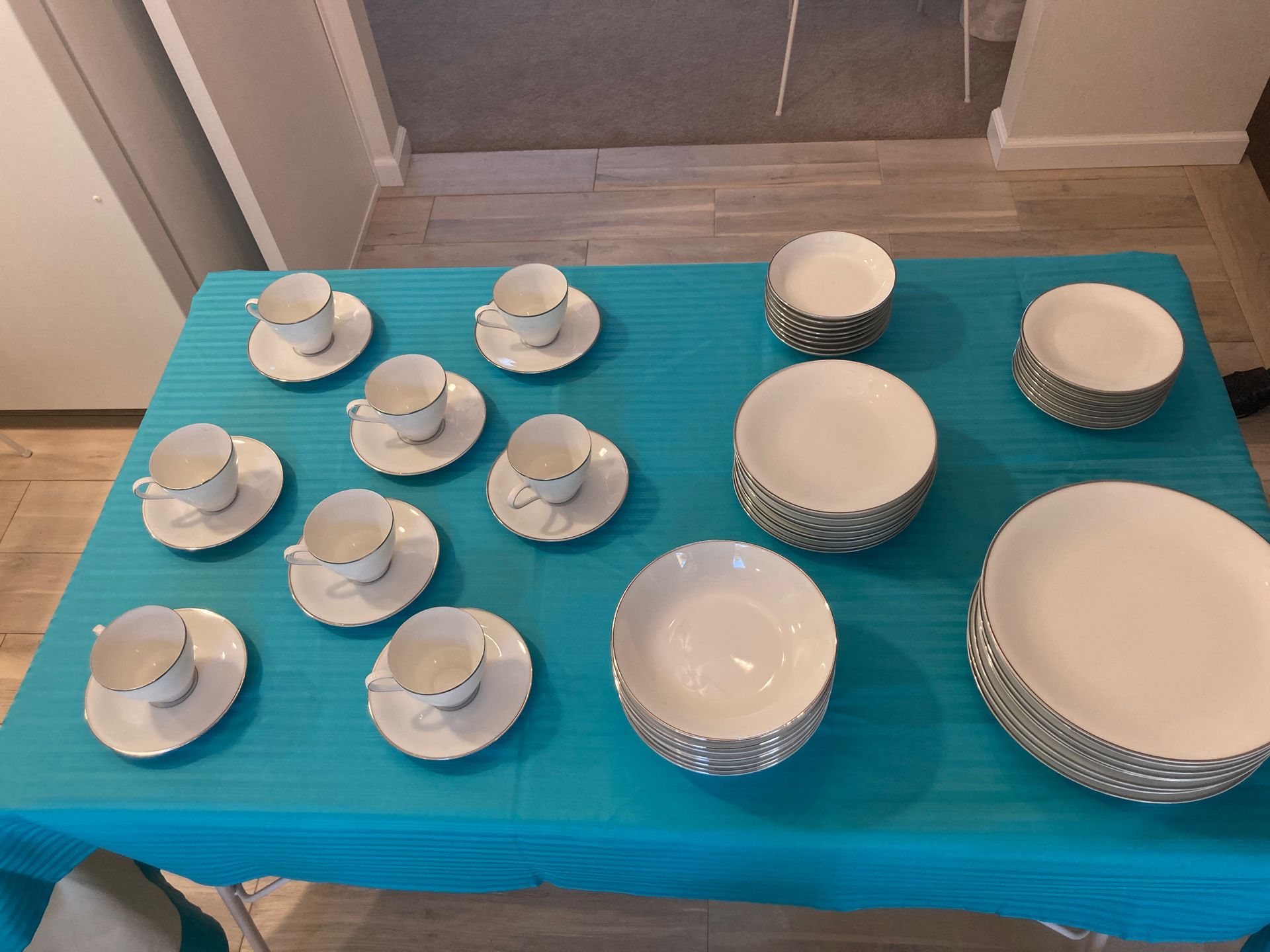 Set of 48, Silver rims. 8 of each. Never been used, no cracks or scratches and no chips.