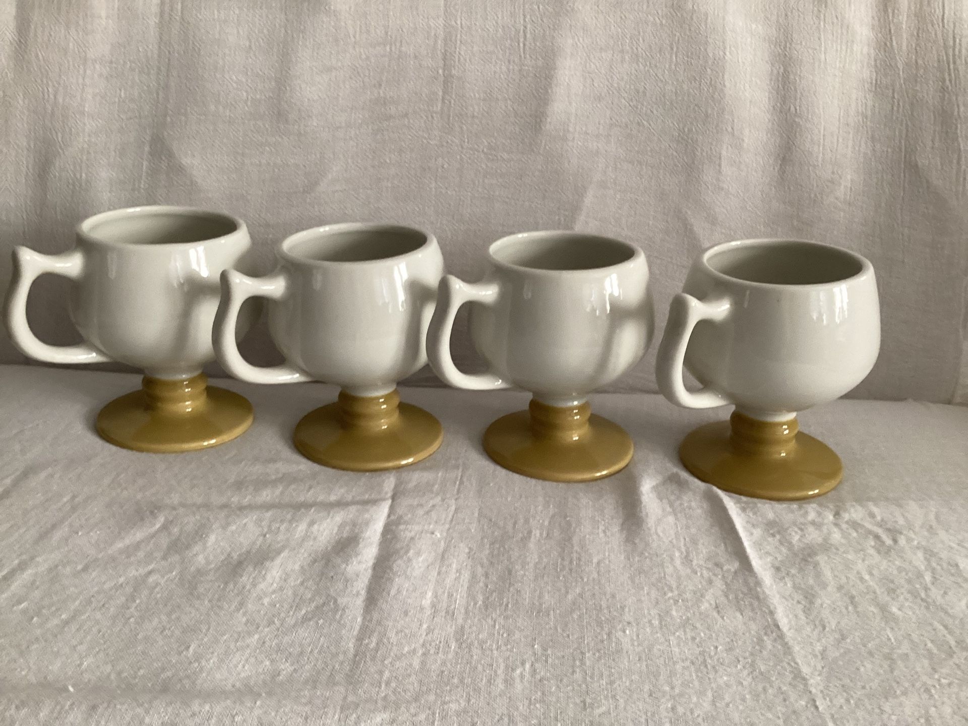 Set Of 4 Vintage Hall 2274 Pedestal Mugs With Yellow Base