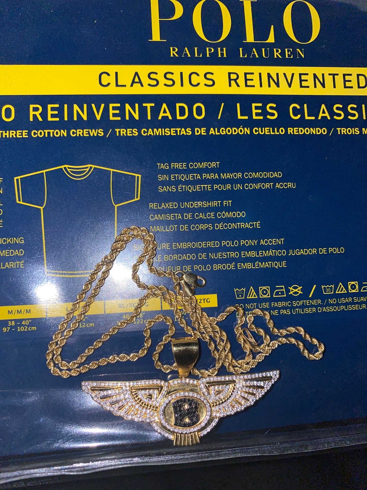 10k yellow gold Bentley pendant and rope chain
