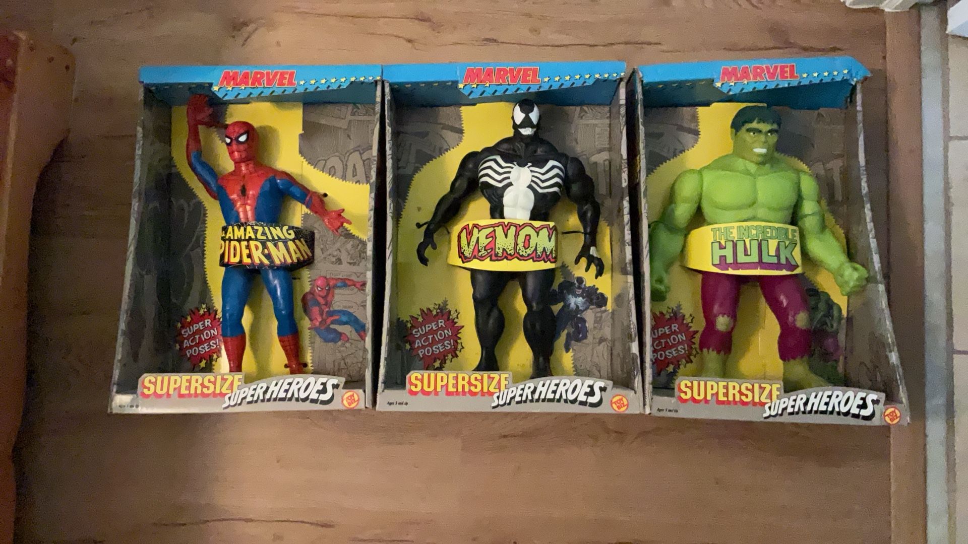 Spider-man, Venom and Hulk. All boxes are original in good condition. Small rips in some. Never been out of boxes.