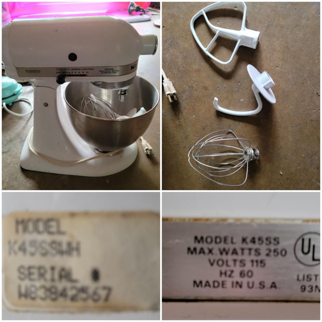 I have a white KitchenAid mixer (model K45SS) that my wife has used for years but stopped working recently. Not sure what’s wrong with it but could be an easy fix or use for parts. Message me if you have any questions. Thanks