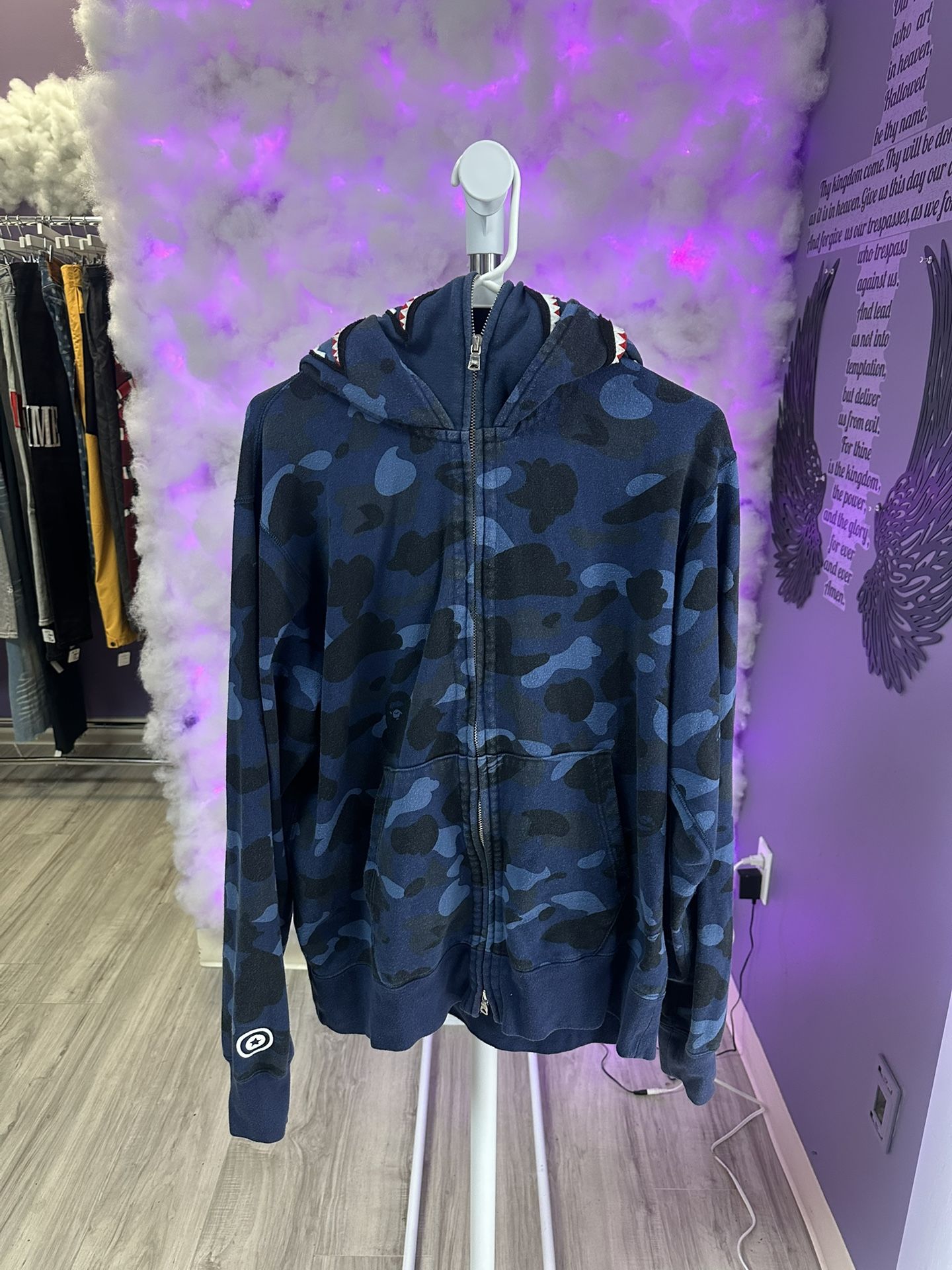 Bape Full Zip Double Hood Navy Camo
