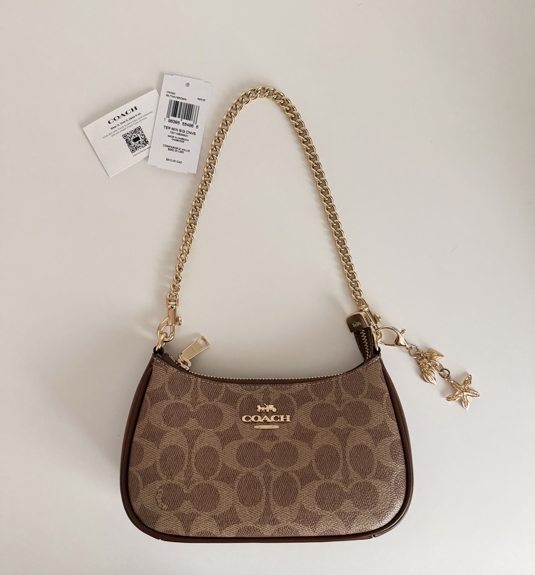 Coach Teri Shoulder Bag brown and tan color gold hardware 3 different straps including a crossbody strap . Brand New