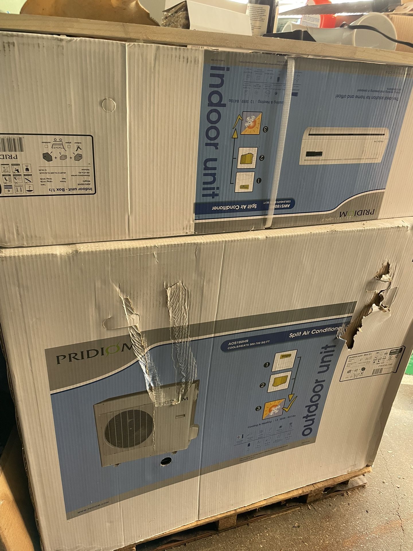 Split Unit AC/heat..AOS180HR Outdoor + AWS180HR Indoor, 18,000BTU heat Pump, 500-700sq Ft, BRAND NEW IN BOX