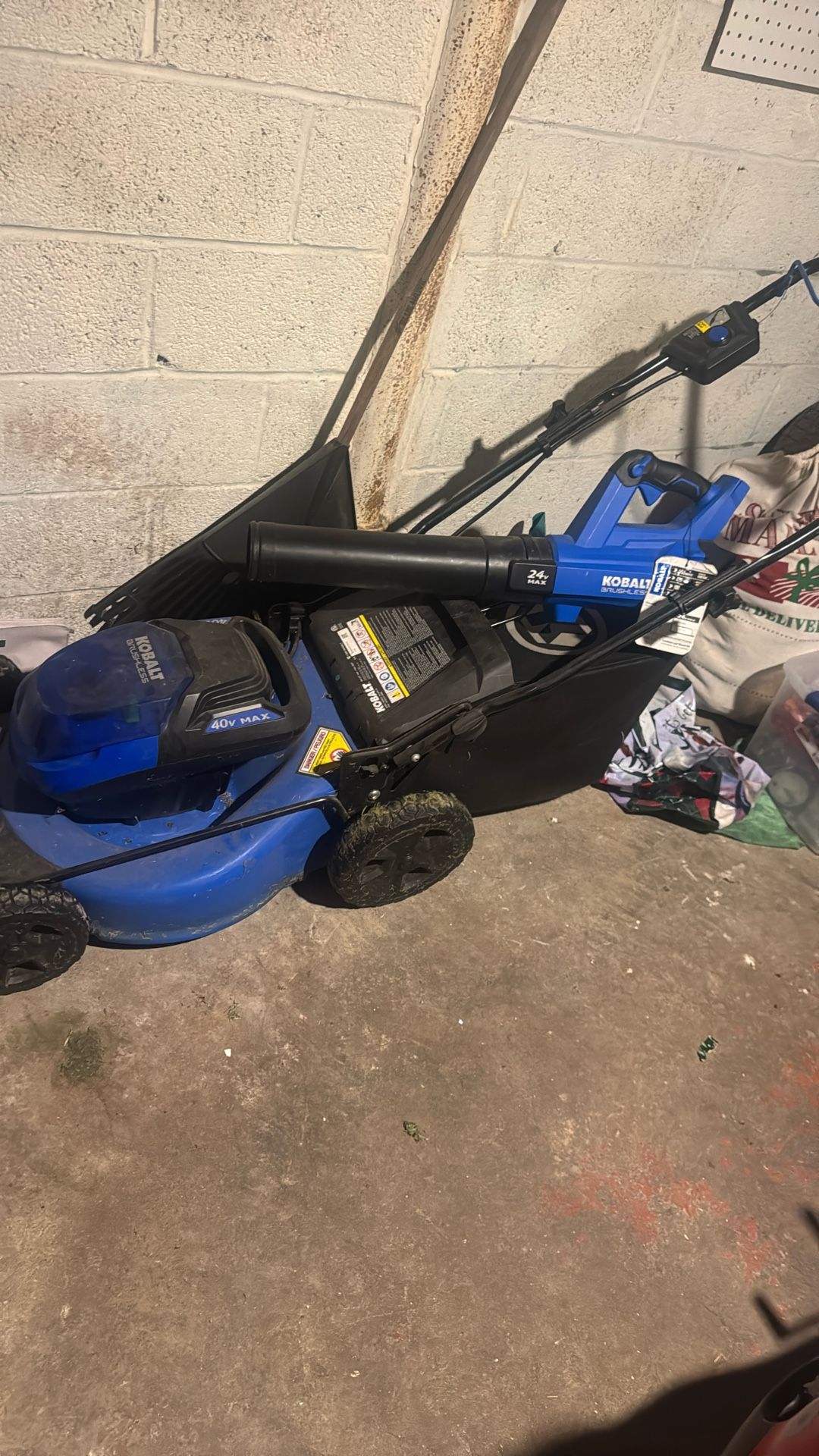 Slightly used Lawn mower and the blower and the weed wacker its has the batteries and charger