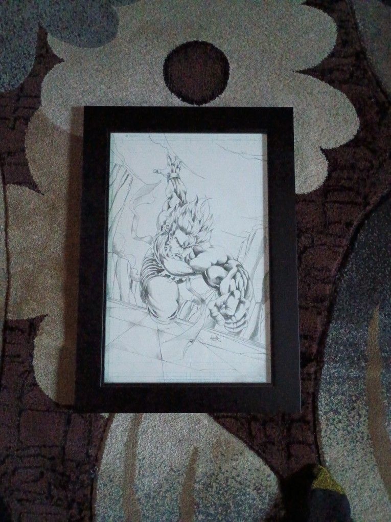 Original pencil drawing by legendary comic book artist Chucky Penero of Goku drawn as a pin up figure. Comes framed. Based on recent listings on comic art fans, original drawings by Chucky range from 250 and 450.