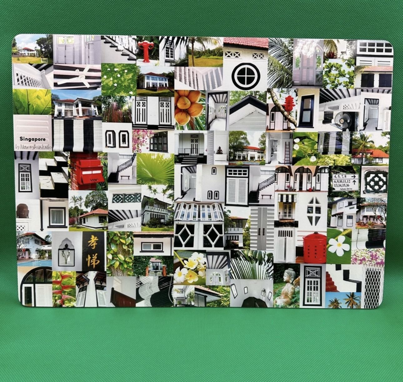 Vibrant placemat featuring a collage of Singaporean architecture and nature. Perfect for adding a splash of color to your dining table. Set of 6 Never used. Excellent condition