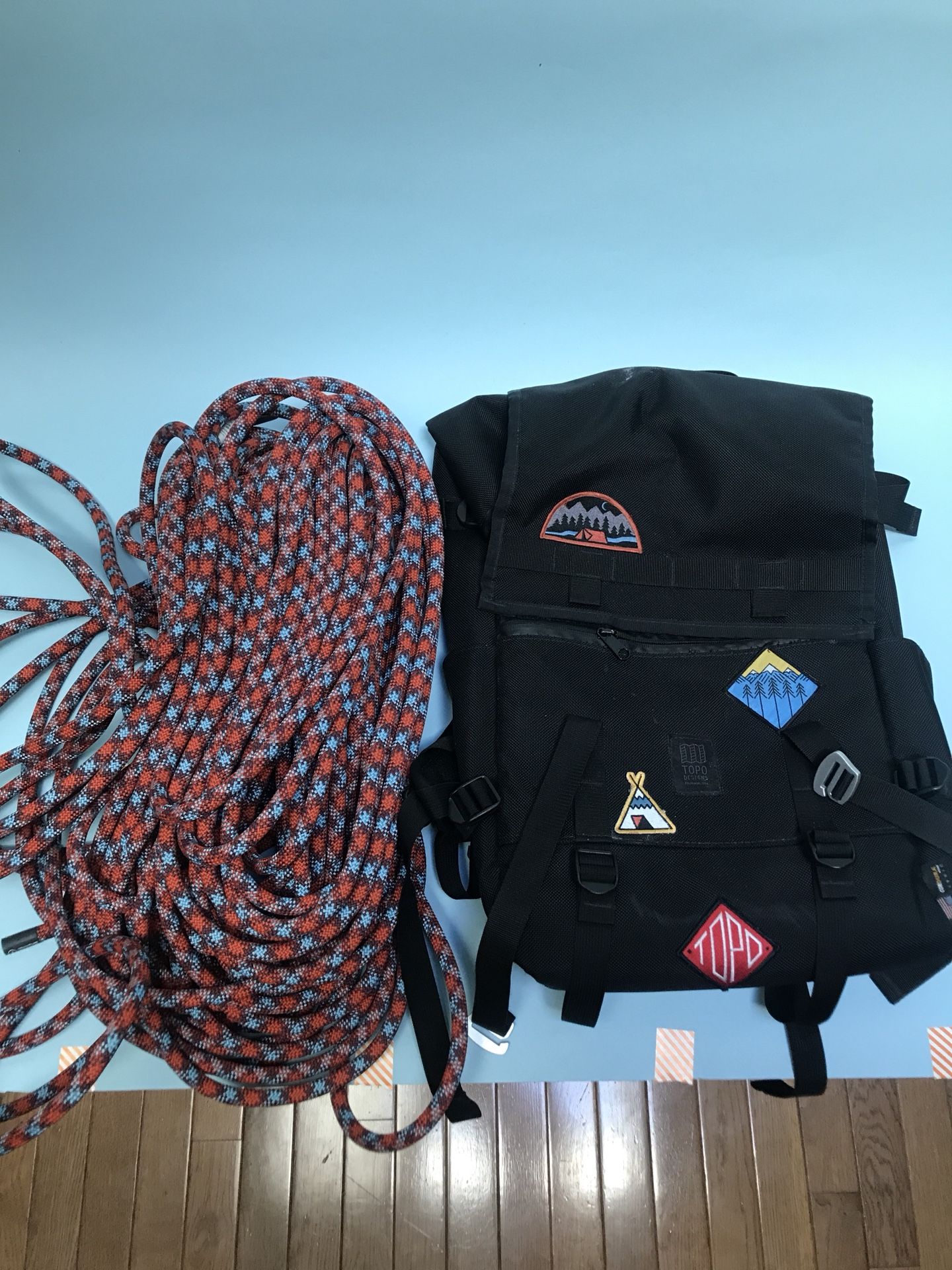 164 foot Climbimg Rope & Topo Designs Flap Pack