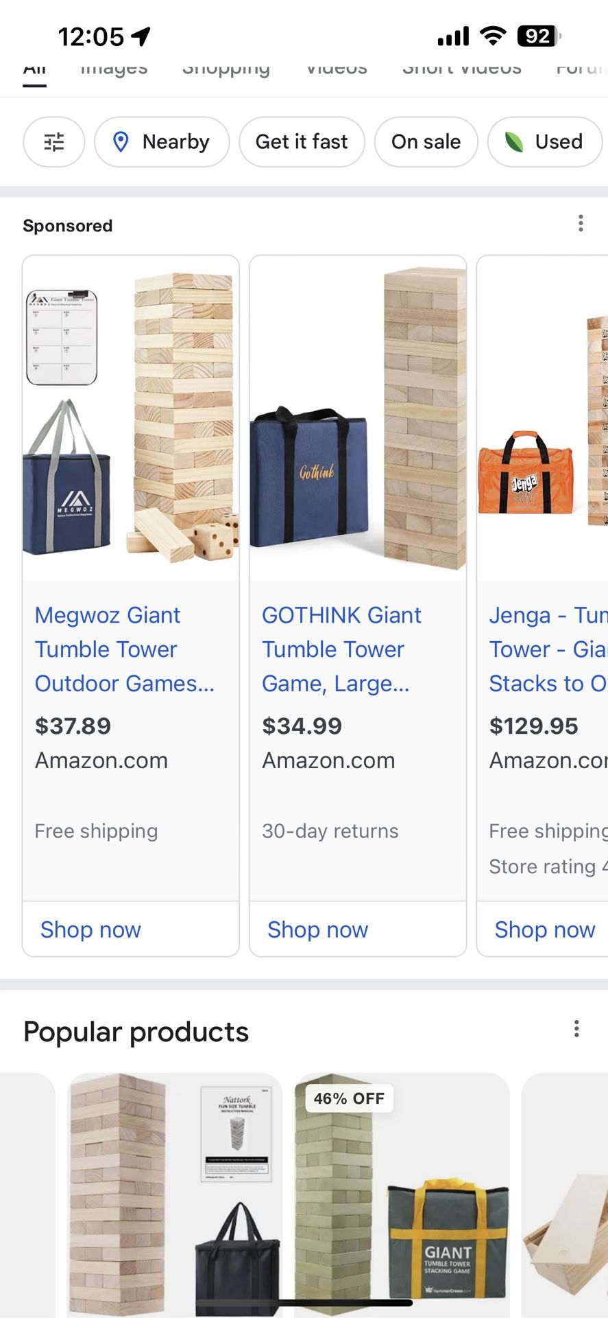 Wood Tumble Tower Games, 60 pcs