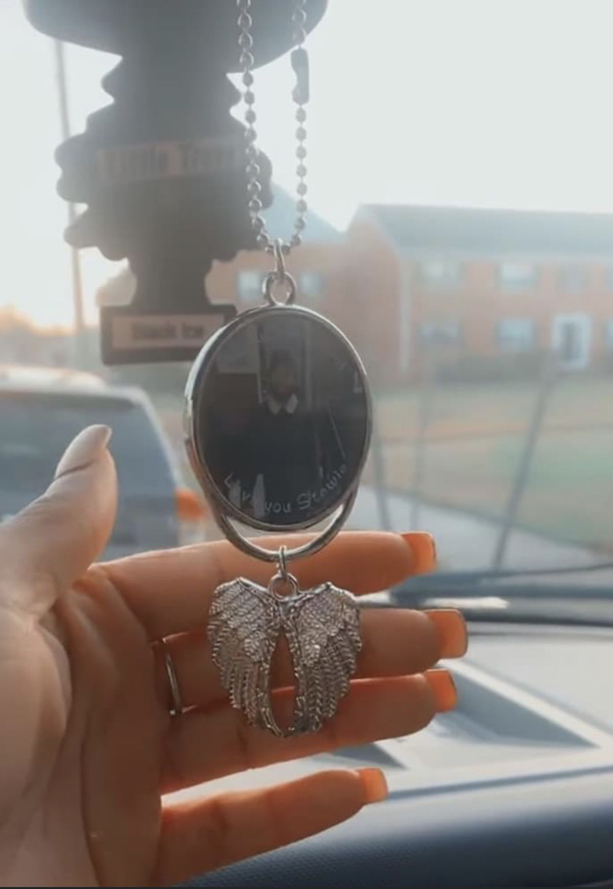In memory hangers Your guardian angel is with you wherever you are you can hang from rearview mirror or wherever you would like double sided can have ready same day pick up n Norfolk off of Tidewater drive and Bayview Blvd at the Walgreen
