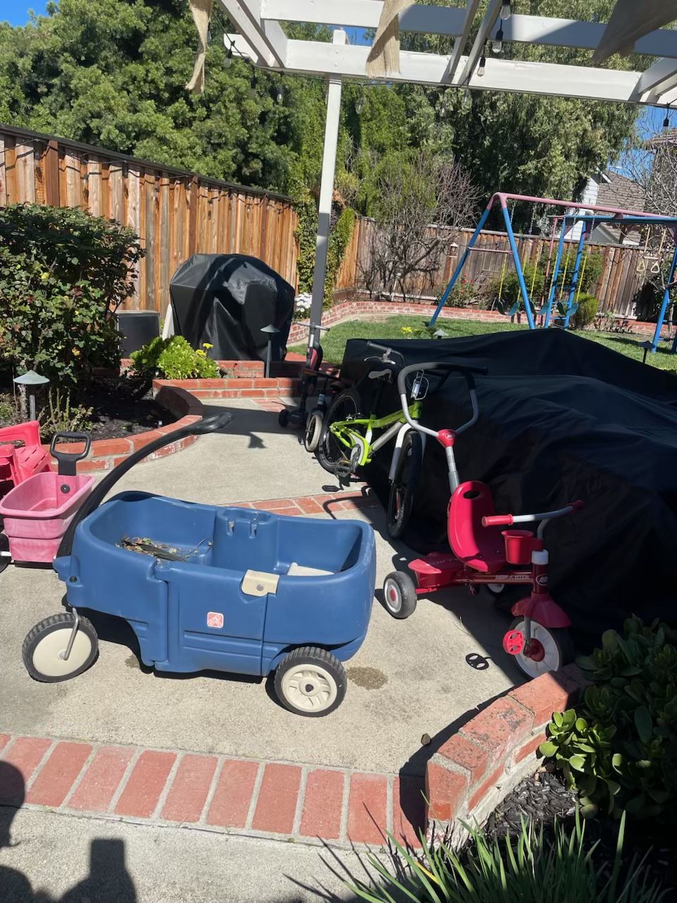 $15 tricycle $20 Green Bike $5 little bike $15 wagon