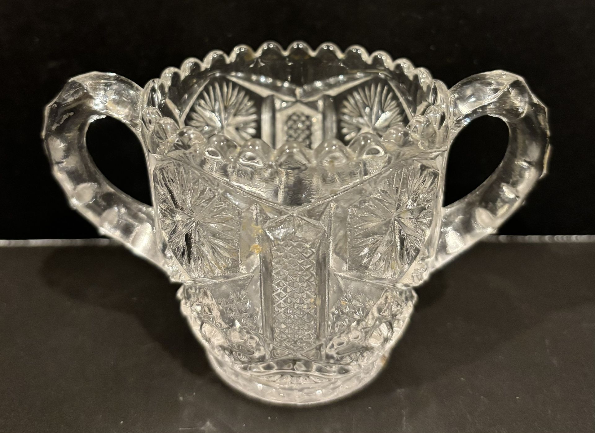 This exquisite toothpick holder by Imperial Glass is a true collector’s item. The delicate hobstar pattern etched on clean glass, combined with the double handle feature creates the aged look. Measuring 2 3/8”H, 2 1/8”Diameter and 3 3/4” Width. Made in the US. Item is gently used in very good condition with no chips, cracks or damage.
