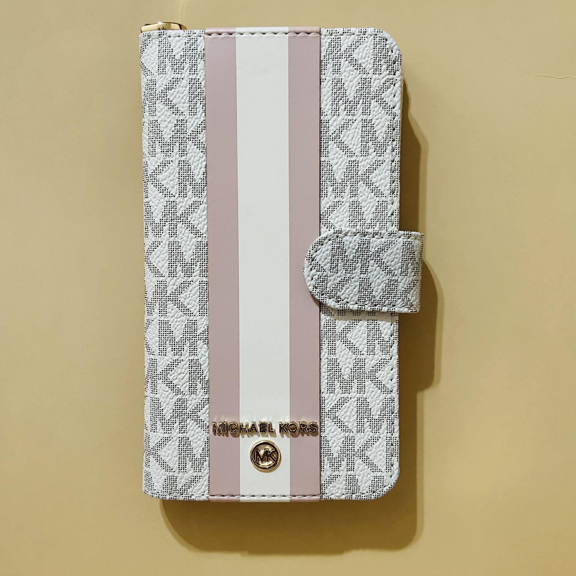 MK Logo Stripe Wristlet Folio Case For iPhone 11 Color: Vanilla / Soft Pink Condition: Excellent almost new ✨ • Trim: 100% Leather • Compatible With iPhone • Exterior Details: 3 Card Slots, Slip Pocket • Magnetic Fastening • Case Dimensions: 6.25”L x 3.75”W Fits a phone with measurements 5.94”L x 2.98” W