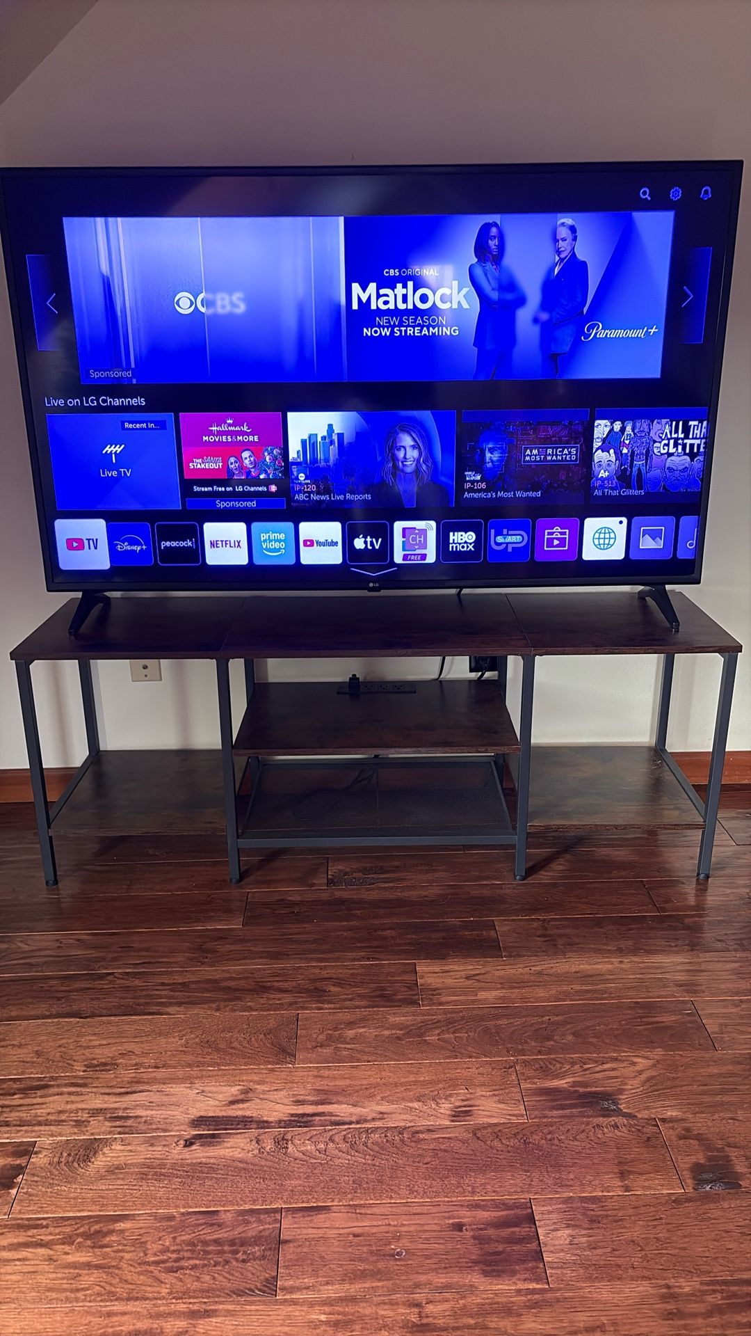 60” smart LG TV with nice like new stand. TV stand alone is worth the price!