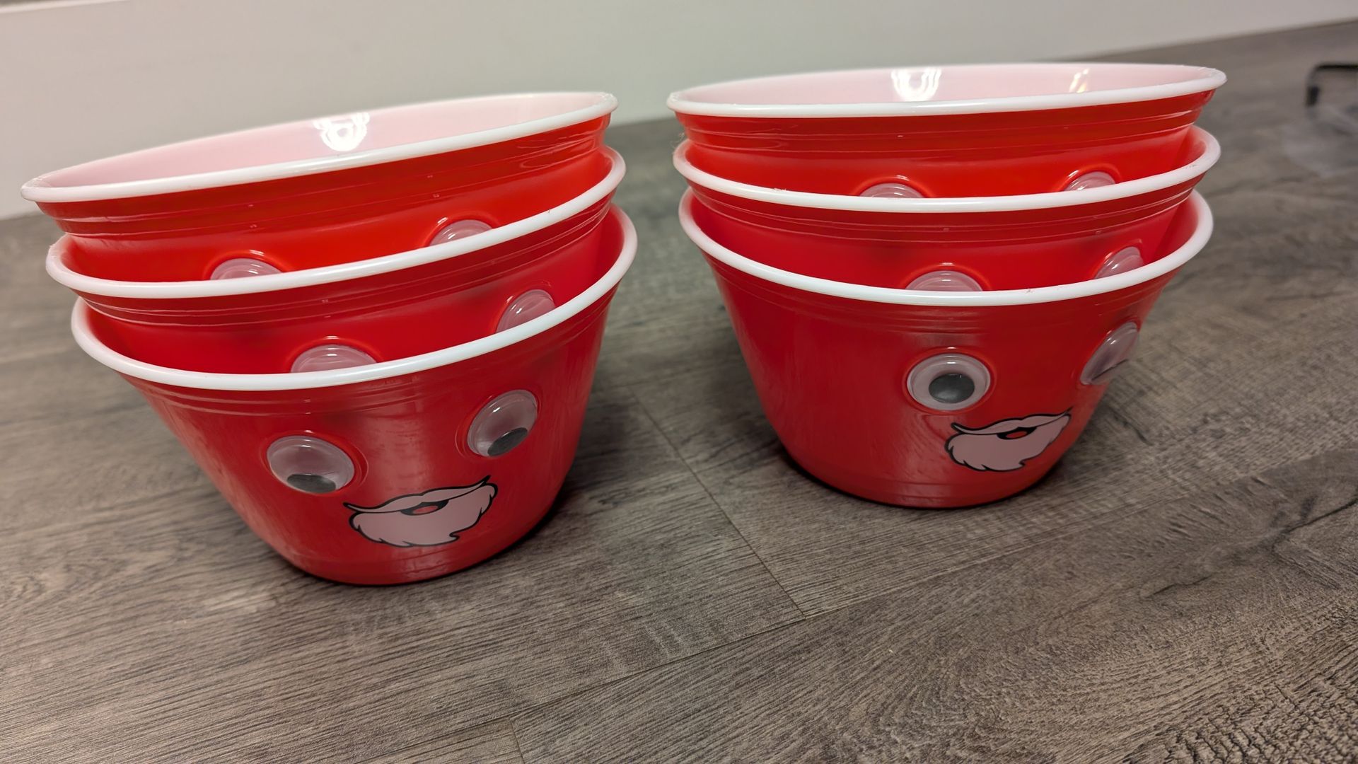 6 Red Santa bowls w Googly Eyes