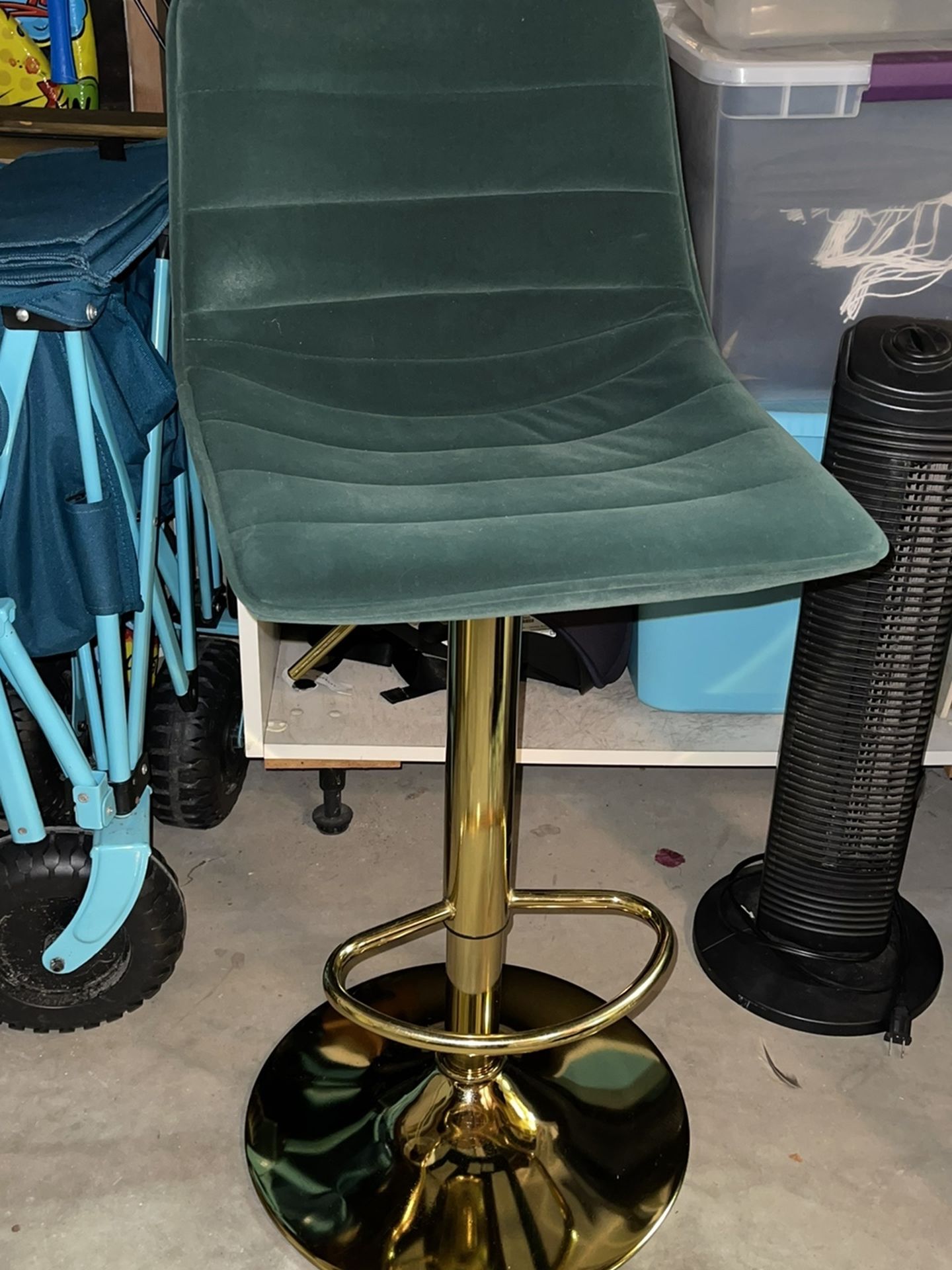 Adjustable height green barstool with gold accent. Clean, no stains. Good condition. Purchased from Wayfair for $180