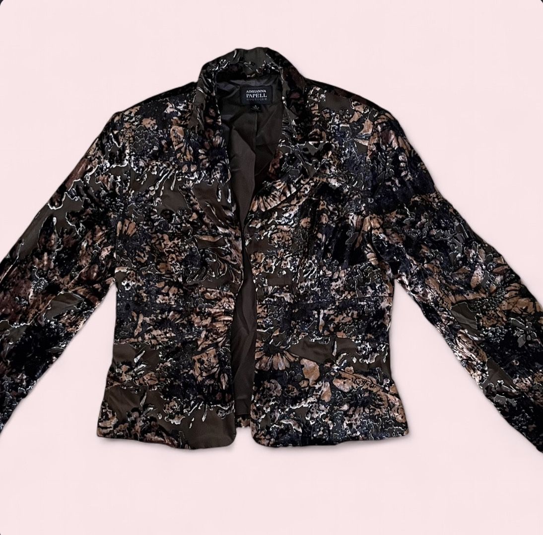 Adrianna Papell Womens Blazer Multi Color Floral Soft Velvet. Size 8