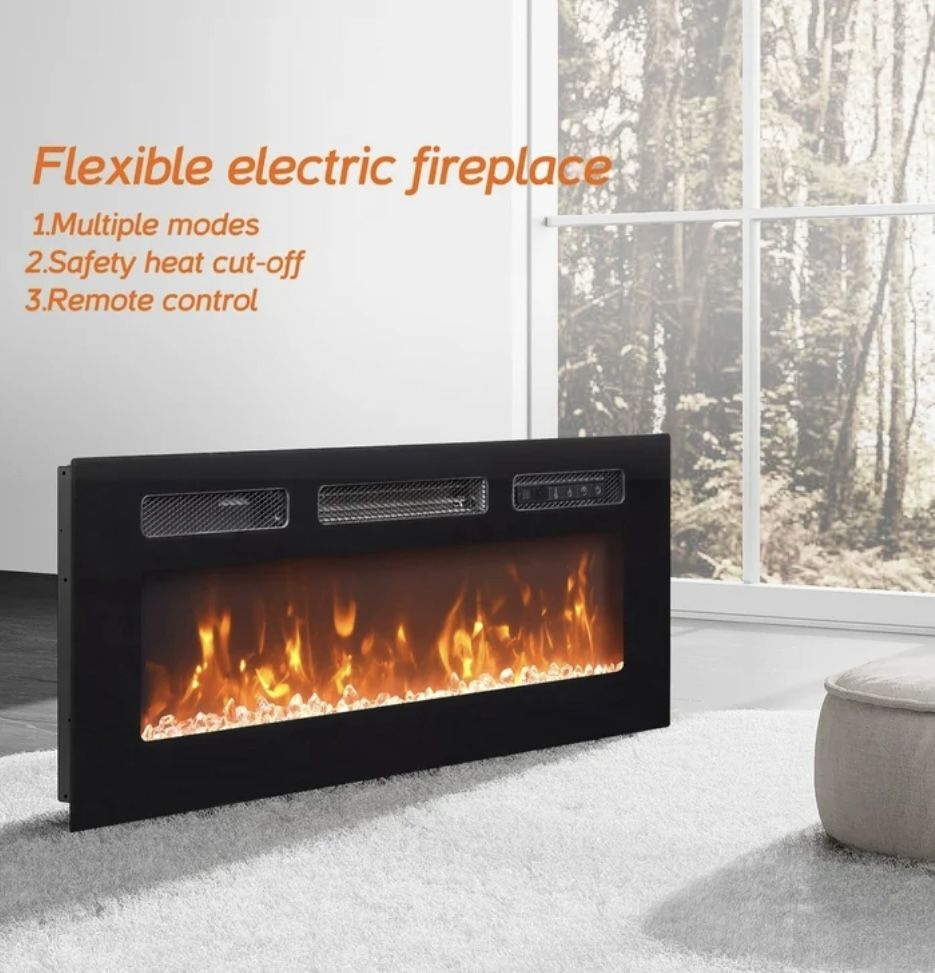 36" Electric Fireplace, Remote & Panel Controlled, Ideal for Living Rooms & Bedrooms, Recessed/Wall-Mounted Heater, 12 Flame Colors Adjustable, 8H Tim