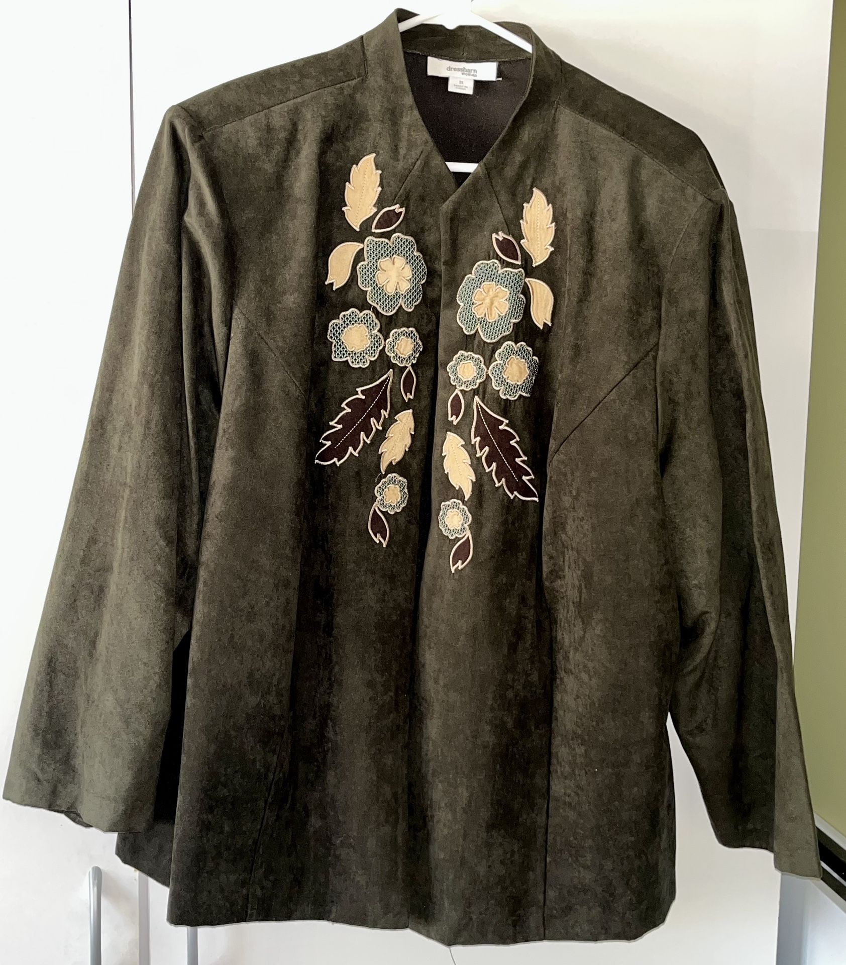 Dress Barn Size 3X Green/Brown Top w/ Embroidered Floral Accent - PERFECT COND.