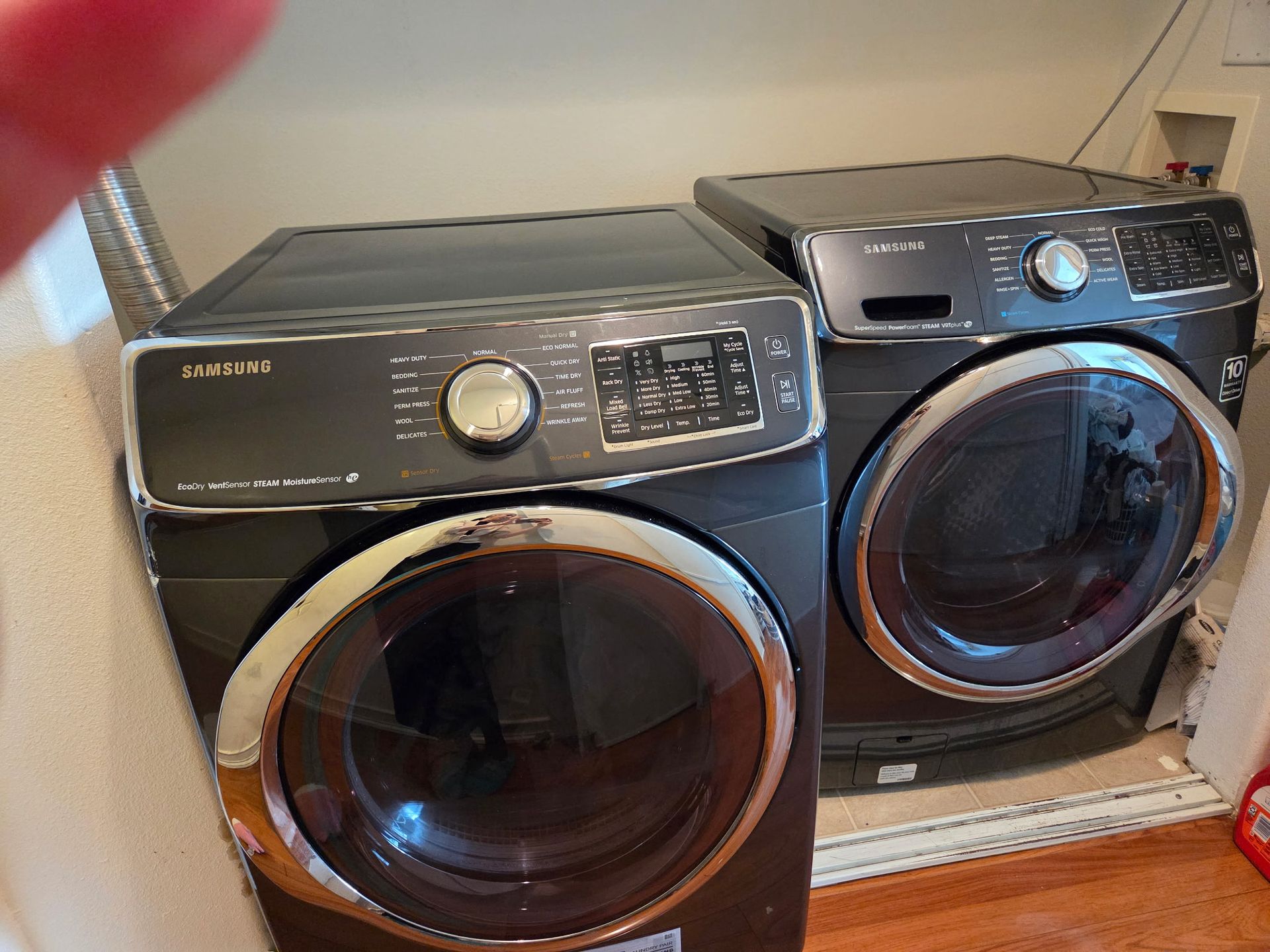 Everything works perfectly but washer makes some noise sometimes when finishing washing. Bought big one as family grew up. Asking $250 for both