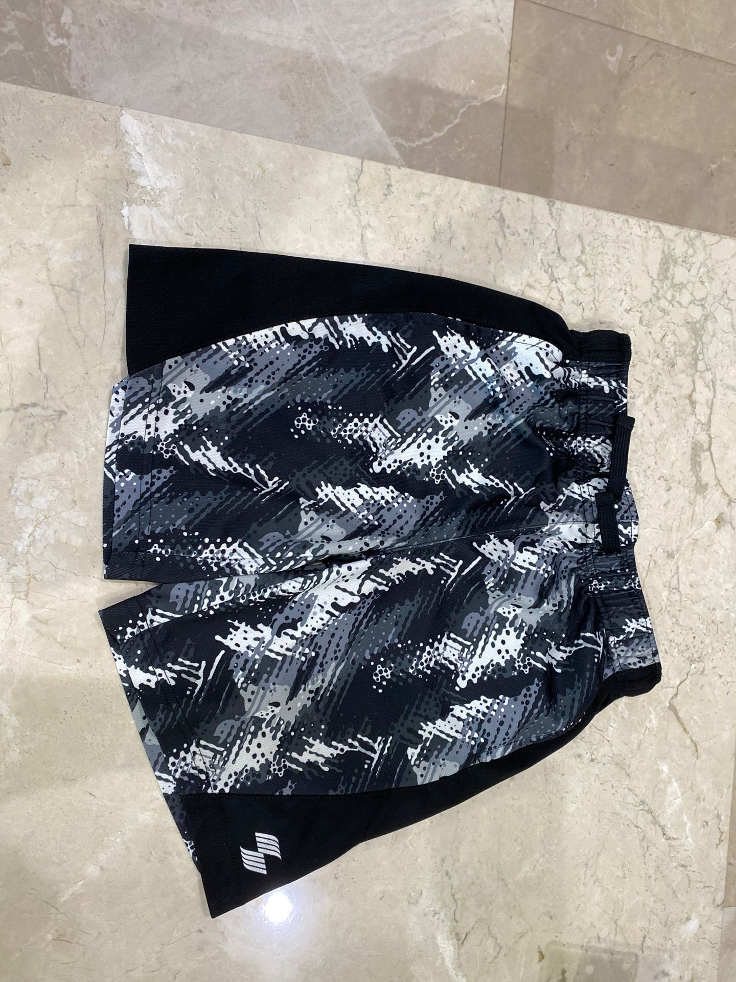 Boys youth athletic shorts size M 7-8 black & white with pockets
