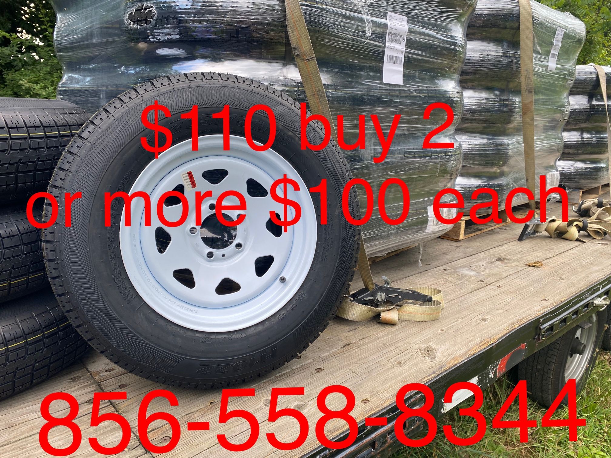 Brand new 15 inches trailer tires ST205/175D15 5 on 4 1/2 bolt pattern  Two or more $100 each Tires have a 2 year warranty  will give you a warranty card with the date of purchase