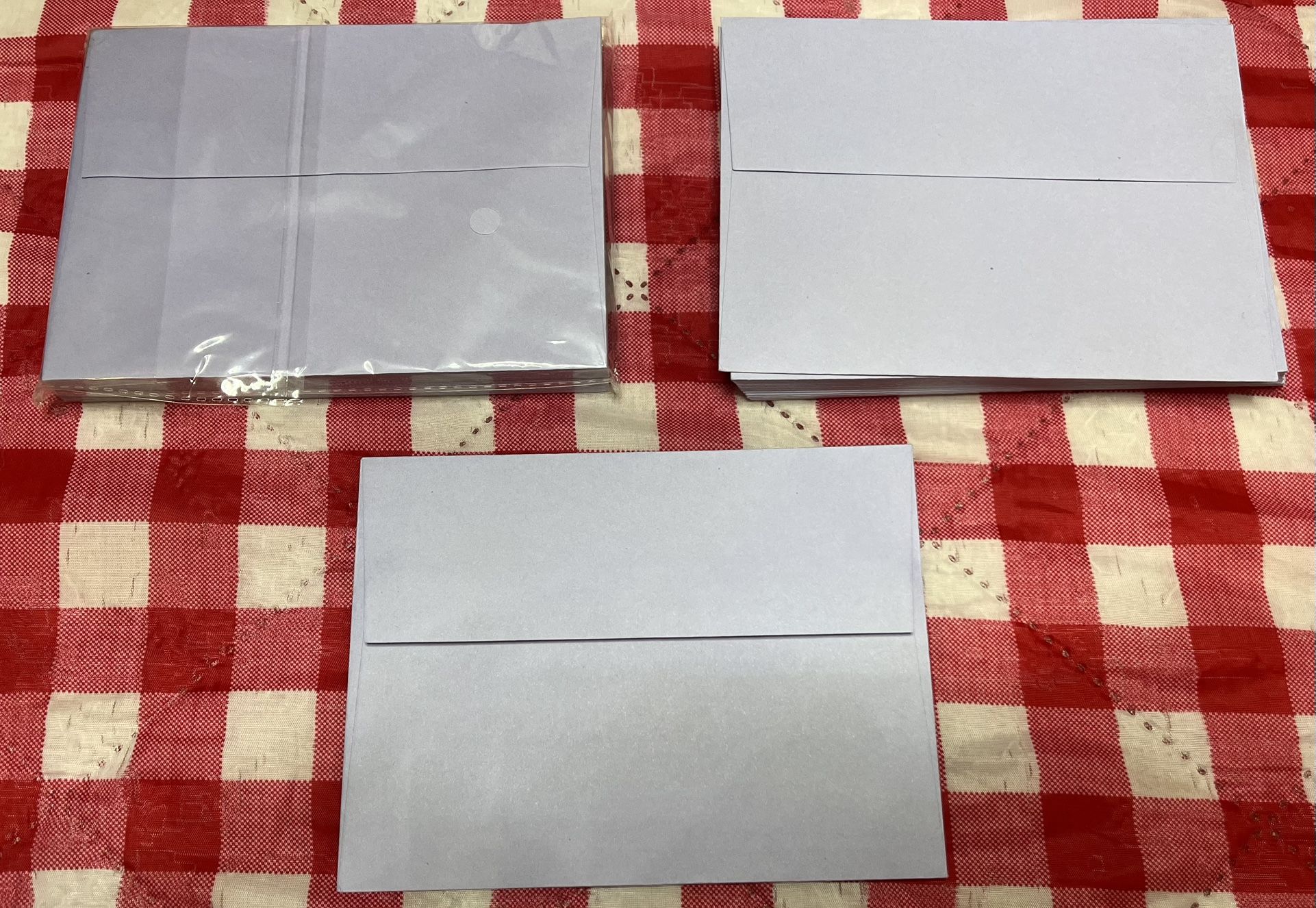 This 50 pack A2 purple envelopes are 7”x 5.75”. These envelopes are versatile for all occasions and recipients, featuring a simple and elegant pastel purple color scheme that complements a variety of invitation styles. These envelopes are a practical and stylish choice for sending out invitations in a chic and professional manner.