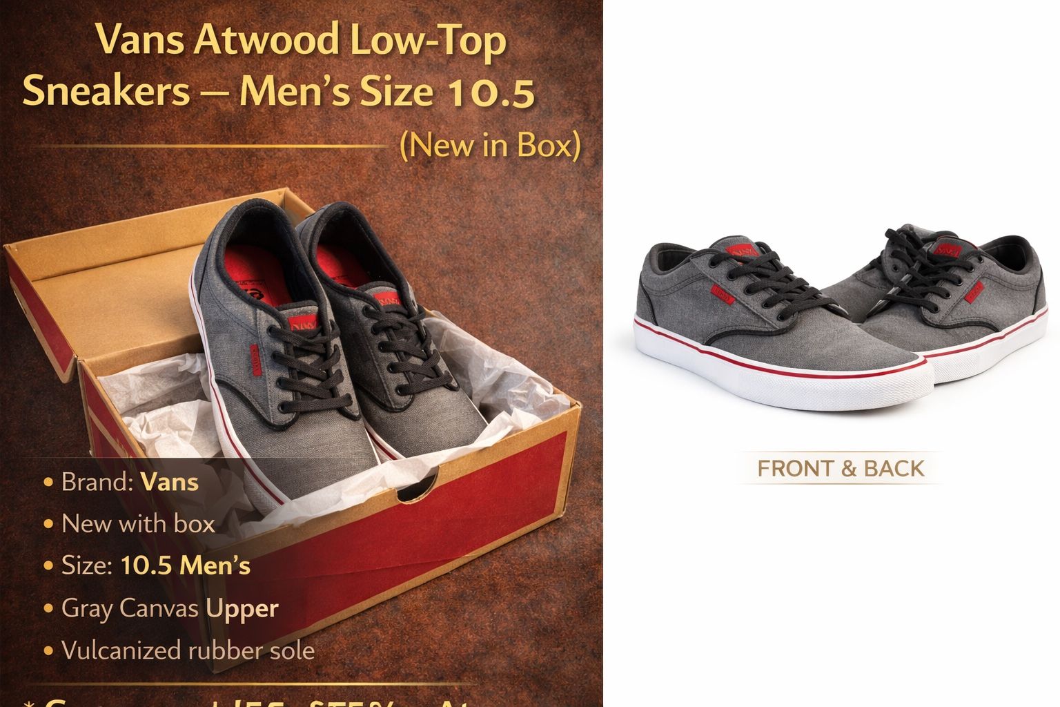 Vans Atwood Low-Top Sneakers – Men’s Size 10.5 (New in Box)