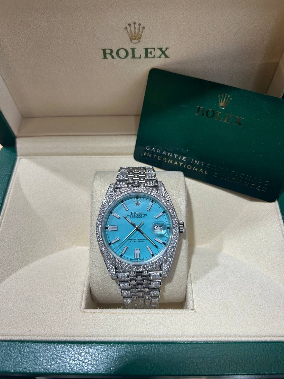 Rolex Datejust 41 41mm diamond set Tiffany blue dial iced out bussdown 126300 box and card jubilee bracelet