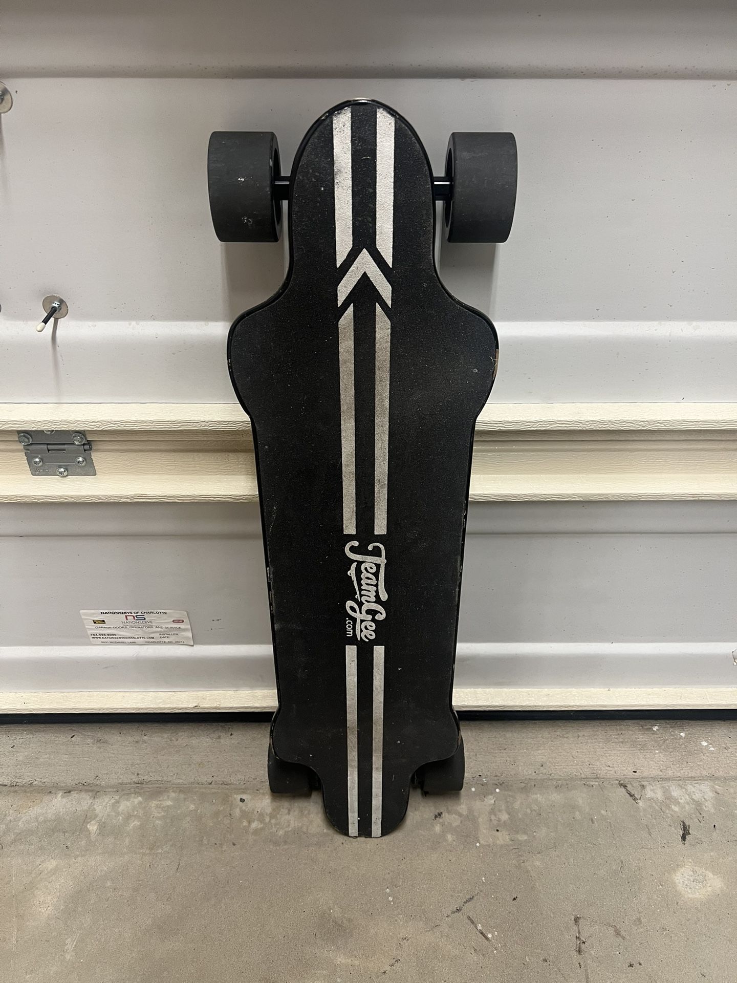 TeamGee electric skateboard in good working condition. Rides smoothly with strong acceleration and braking. Shows normal wear from regular use. Details: • Electric skateboard (TeamGee) • Smooth ride and responsive controls • Battery charges and works • Normal cosmetic wear (scratches/scuffs) Includes: • Electric skateboard • Charger • Remote control (screen works) Great option for commuting, cruising, or someone looking for a reliable electric skateboard at a good price.