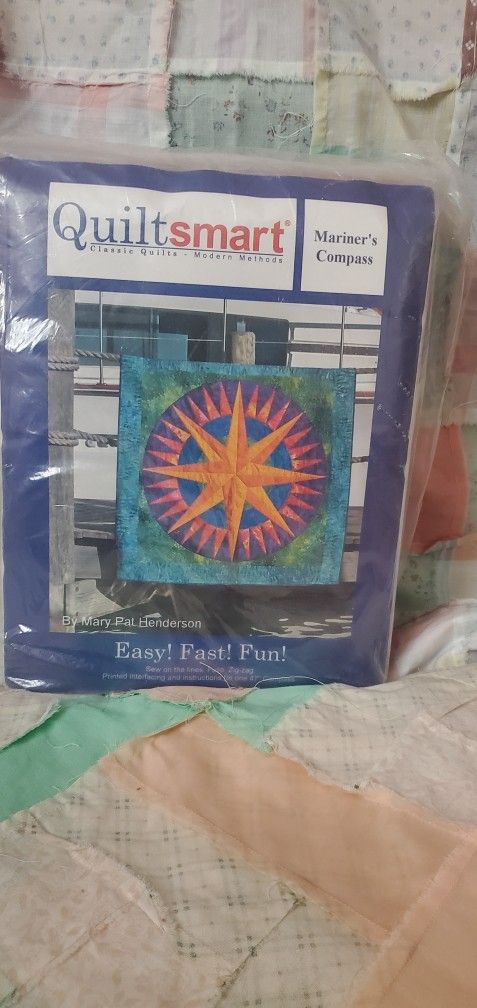 Beautiful blues and greens-- unopened quilt kit. Directions and fabric both included. Package states all that is needed: "Sew on the lines. Fuse. Zig-zag". Make this large and impressive quilt in time for the holidays. Originally $135.95.