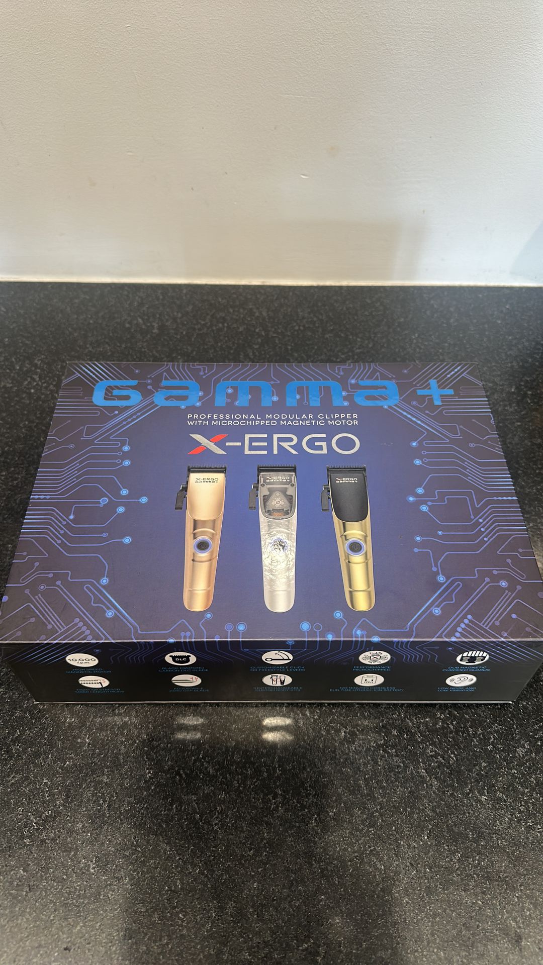 Brand New Gamma+ X-Ergo Magnetic Motor Cordless Clipper The magnetic motor, the holy grail of clipper motors, just got souped-up. Already considered the most heavy-duty and professional motor, the X-ERGO features the latest in magnetic motor technology with a microchipped PC board and 9V motor for even more power and torque. This turbocharged long-life magnetic motor runs at 10,000 strokes per minute, not only offering the ultimate in speed, power, and longevity but the quietest performance of any professional clipper. Perfectly Balanced Modular Ergonomic Design Black Diamond Carbon DLC Blade Next Level Customization & Long Battery Life Micro-Chipped Magnetic Motor with Magnetic Guards & Bracket Options