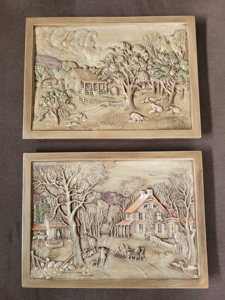 2 Rare 1976 Vintage Ceramic 3D Hershey Molds hanging Picture Art. 11.5"×15.75"x1.5" Excellent Condition