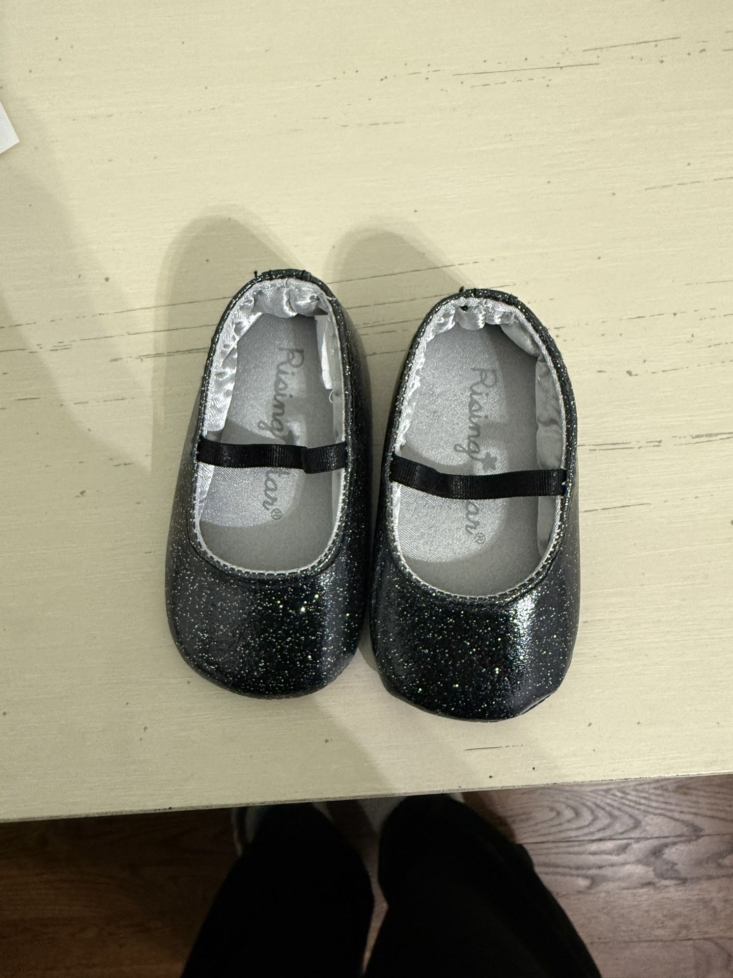 Rising Star baby girl shoes black with silver sparkles size 0-6 months