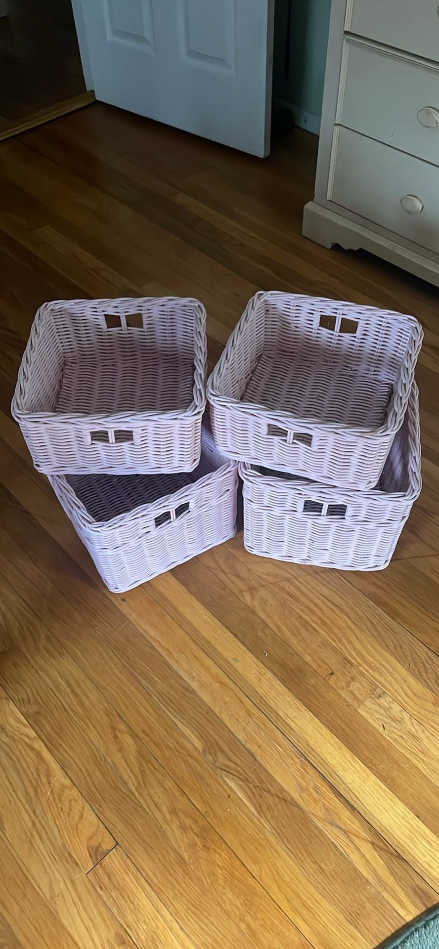 4 Decorative Hard Wicker Baskets