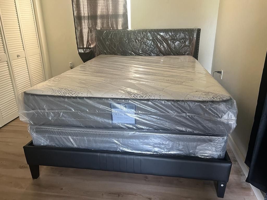 NEW MATTRESS QUEEN SIZE PLUSH WITH BOX SPRING