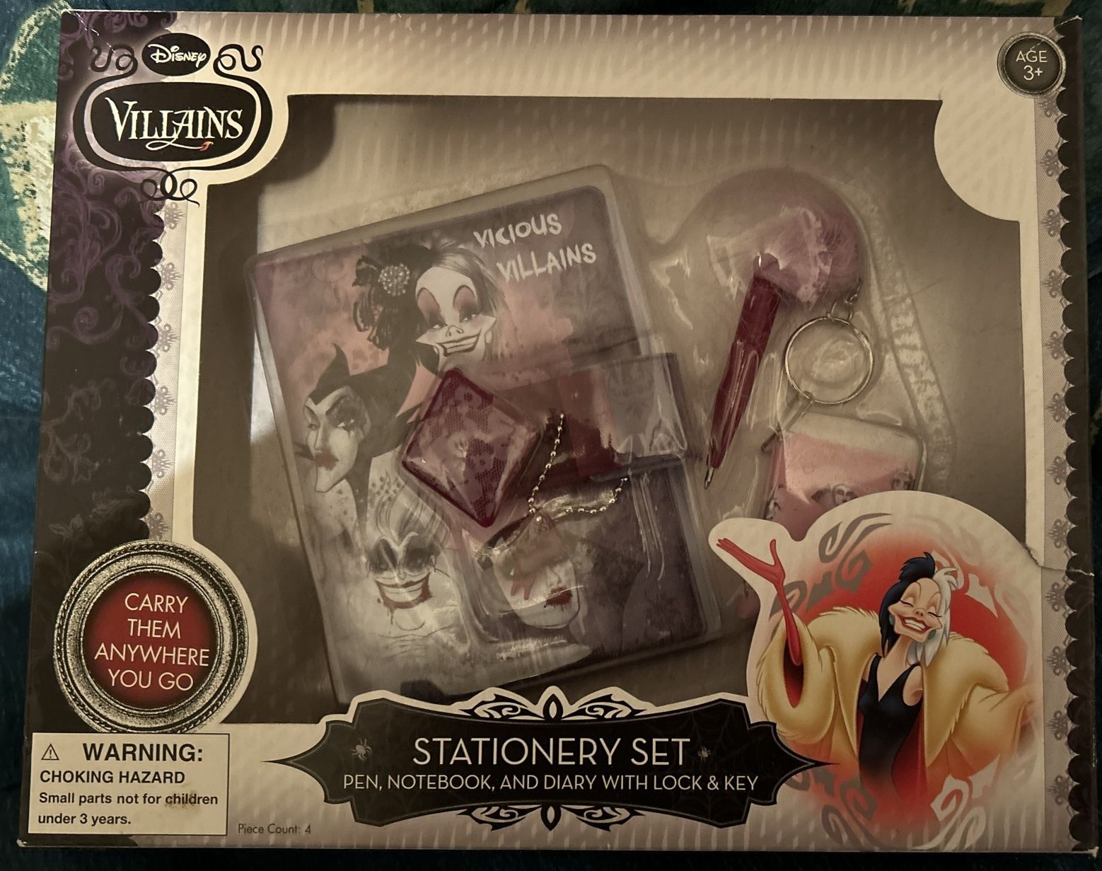 Disney Villians Stationary Set Never Opened Pen , Notebook, and Diary with Lock & key