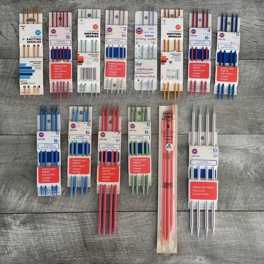 14 Sets Vintage Boye Metal and Hero Plastic Double Pointed Knitting Needles
