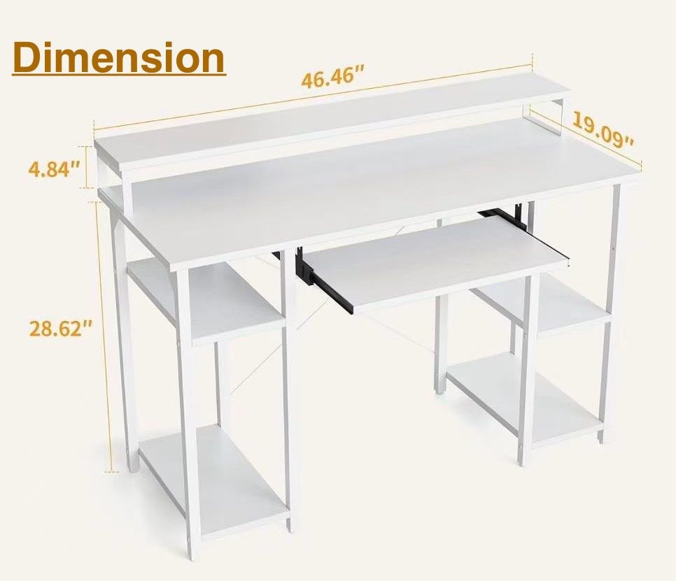 CubiCubi Computer Desk with Keyboard Tray, 47 Inch Office Desk with Monitor Stand and Storage Shelves, Music Studio Desk, Work Table Gaming Desk, White 🙏pay $56.00 + sale tax by cash or card in person (final sale). ✌️Not Accept price negotiation through thIs OfferUp App ; The price is as marked ✌️Pick up at showroom : zip code 80231(😀) or 80223(✌️) or 80241 (🥨)depending on item ✌️Hour : from 10 am to 7 pm(Monday CLOSE) ✌️Pick up at showroom, No shipping, LIMITED delivery option ✌️ ‘’LIMITED Delivery option ‘’ may be available with ‘’EXTRA charge’’ . Please consult ‘’BRICK-and-MORTAR STORE IN PERSON’’ for delivery option & ‘’ EXTRA charge incurred from delivery “.( Can’t provide delivery details through OfferUp App due to complexity.) ✌️please stop by ASAP after all info(including address) provided OR ✌️double confirming “available or not” again if the address info is already provided for days.. 🙏can NOT relocate inquired item to other showrooms but you can wait to see if it is available in other showrooms (current item location zip code can be distinguished by 🥨😀✌️) ✌️ ALL furniture are new and not used at all. However, due to few careless or overweight handling during shipping, transport or assembly, few of them will have mild scratch or dents. So does some inventories in the box. We try our best to photo those in pictures after assembling them. The price is adjusted based on those issue that we notice. ✌️ Item sold as the picture (it is assembled ) or it will be mark as in the boxes 🥰Reminder: Please pay attention to the address I send you. NOT all showrooms carry the item you inquiring. There is higher chance the item may be ONLY available currently in this Specific ADDRESS I send you. If you inquire multiple items, they may be located in multiple different showrooms…please pay attention to address. 🙏 You are welcome to ‘’GENTALLY CHECK ’’ items/ Furniture in PUBLIC showroom before deciding to purchase it or not. 🙏NO RETURN, NO REFUND, NO EXCHANGE