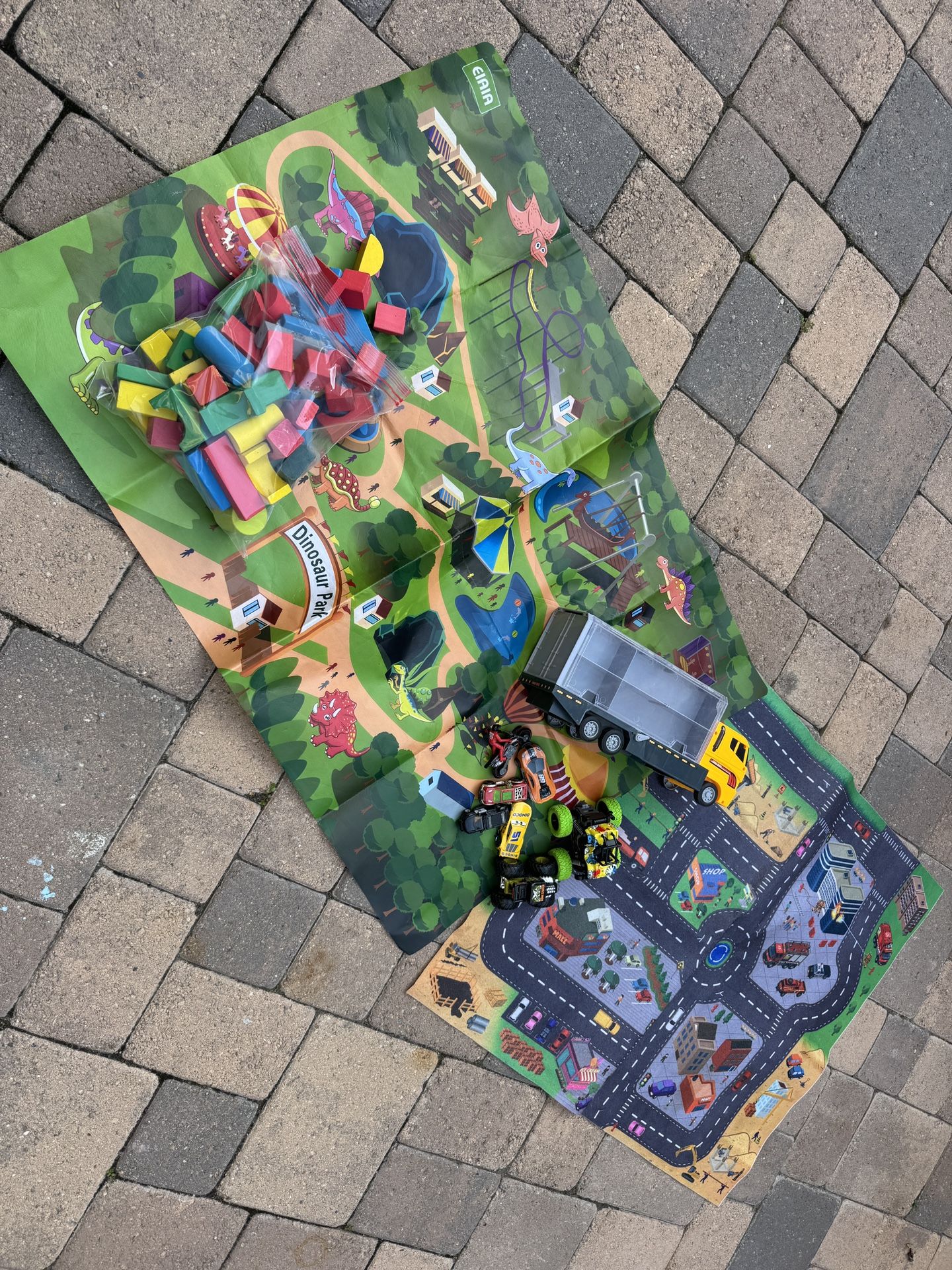 Kids toy car map, cars and blocks in good condition
