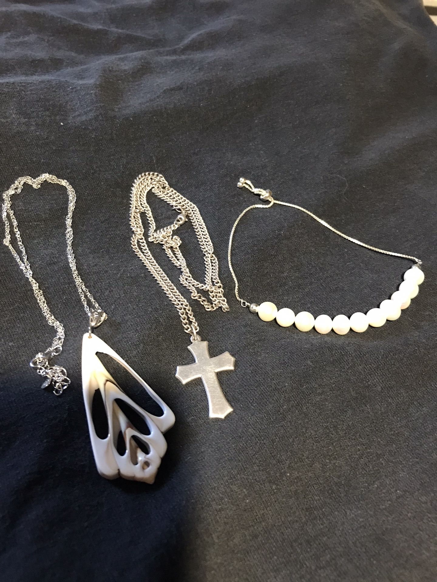 24inch James Avery Sterling silver necklace with cross pendant 18inch Sterling silver necklace with sea shell pendant Sterling silver bracelet with fresh water pearls Gold plated Sterling silver balloon dog bracelet $150 for all or best offer