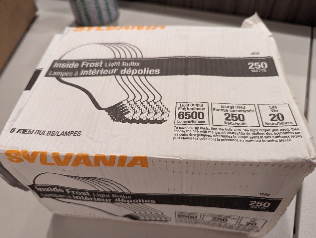 6 Pack New 250w Incandescent Light Bulbs Inside Frost A 23 6500 Lumens 120v 250 Watts Sylvania