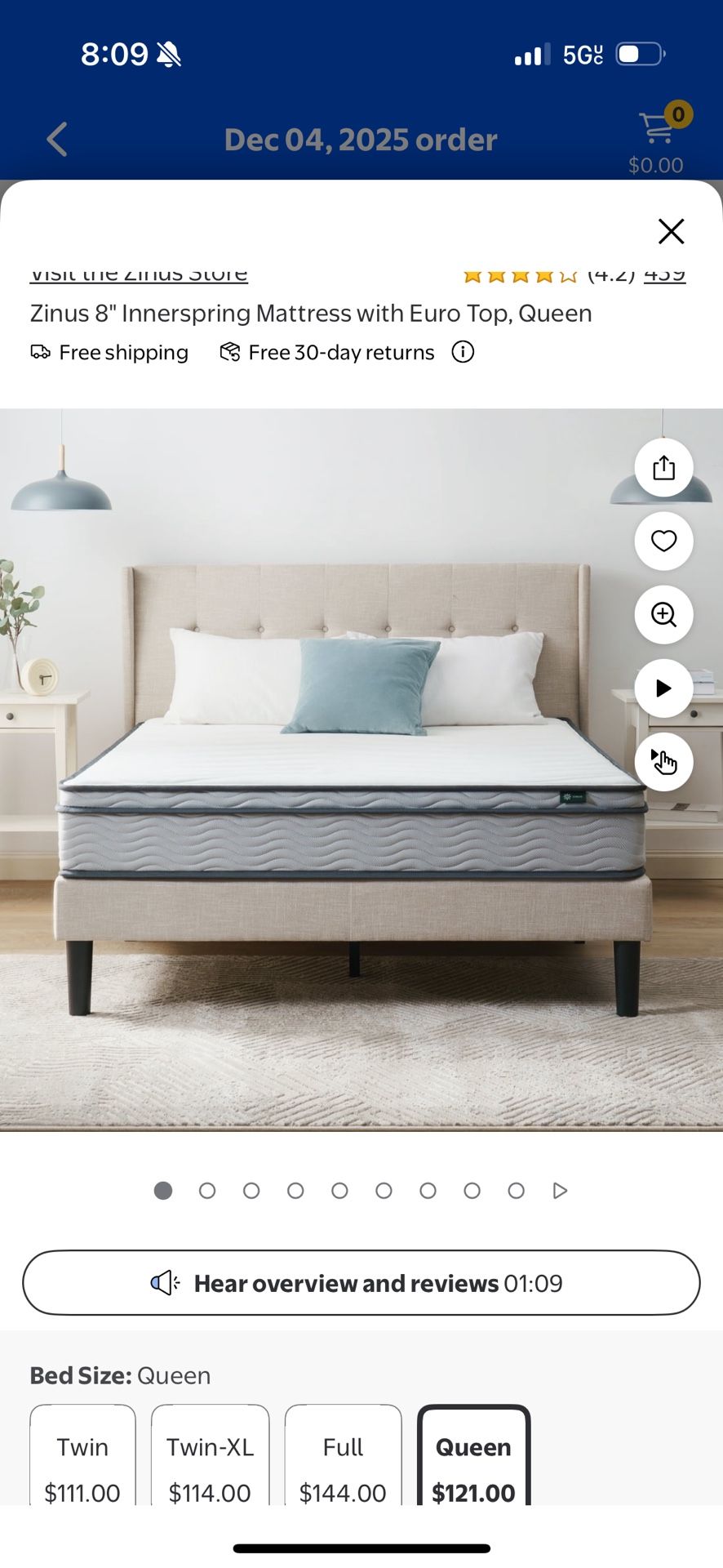 Walmart Used for 3 months No longer need it Pick up Queen mattress