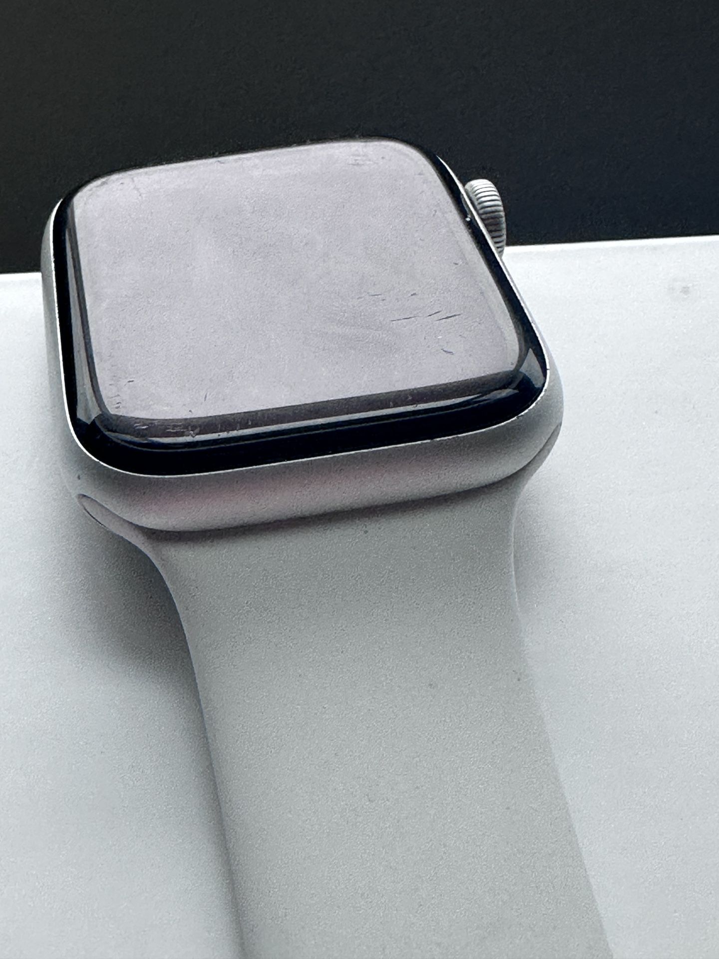 Comes with Apple charging cable. Works well, no problems. Slight scratches on face but not noticeable when on.
